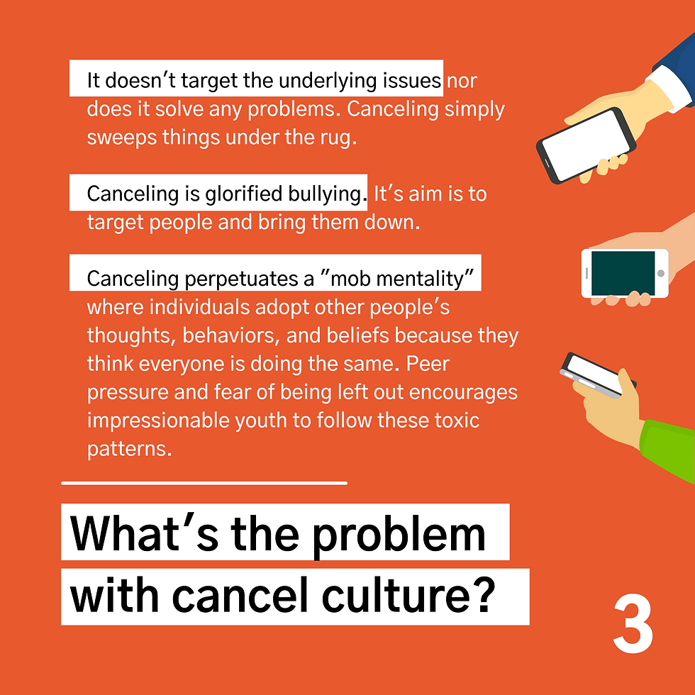 View our social media slideshow below on the impacts of cancel culture and what you can do to hold yourself accountable for this behavior.